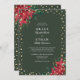 Elegant Gold Glitter Red Green Florals Christmas Wedding Invitation. Holiday wedding poinsettia design features gold Glitter accents and botanical Poinsettia Christmas Florals against dark green background making it an ideal choice for holiday weddings.
