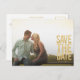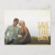 Gorgeous faux gold glitter typography on the front of this designer postcard which you can upload into with your own engagement/save the date photo portrait. Easily and quickly personalise this designer professionally printed save the date postcard here and now by just typing over the example text and adding your own photograph. Elegant, chic, simple and classy gold block letters glitter glitz typography
