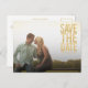 Gorgeous faux gold glitter  typography on the front of this designer postcard which you can upload into with your own engagement/save the date photo portrait. Easily and quickly personalise this designer professionally printed save the date postcard here and now by just typing over the example text and adding your own photograph. Elegant, chic, simple and classy gold block letters glitter glitz typography