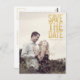 Gorgeous faux gold glitter typography on the front of this designer postcard which you can upload into with your own engagement/save the date photo portrait. Easily and quickly personalise this designer professionally printed save the date postcard here and now by just typing over the example text and adding your own photograph. Elegant, chic, simple and classy gold block glitter typography.
