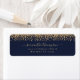 Gold Glitter Elegant Script Navy Blue Glam Name and Return Address. A sparkly touch to add to your birthday mailings, with a faux glitter gold border at top on a classic navy blue, and your name is in a stylish script with swashes. Easily personalise the text to your own details. You can also change the text and background colours via the customise further option if you wish.