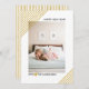 Gold glitter stripes contemporary New Year's holiday photo card. A striped pattern of diagonal stripes covers the upper left and bottom right corners accented with a gold heart. Photography © Storytree Studios, Stanford, CA