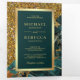 Gold Glitter Teal Marble Photo Wedding Tri-Fold Invitation