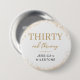 Celebrate a fabulous 30th birthday in style with these elegant 'Thirty & Thriving' button! Featuring a chic white design accented with sparkling gold glitter confetti gold typography, this button is perfect for a milestone celebration. Personalize them with the name for a special touch.