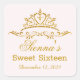Golden glitter effect classic style scrolls and princess Tiara custom Sweet 16 Sticker. The background colour can be changed.
