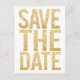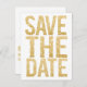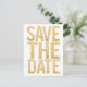 Faux Gold Glitter Save the Date Typography on chic white background. a bold, strong, trendy, stylish, designer typography Wedding Save the Date Postcard template to suit most weddings. Whether you're having a night wedding, a gold glitter wedding, a modern wedding... this affordable designer post card design is for you!