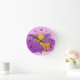 A cute pink and purple unicorn clock with a glittering, golden unicorn prancing on its back legs over a fluffy purple cloud. Around the unicorn are shiny gold stars, and underneath is a pretty shade of pink.