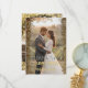 Perfect for summer or autumn weddings, this design beautifully balances rustic charm with modern glamour. The front displays your names and wedding date in a stylish gold-tone geometric font, making it a wonderful keepsake for your guests. Easily personalize this template with your favorite wedding portrait and details to create a truly memorable message of thanks.