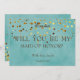This 5" x 7" green gold glitter beautiful MAID OF HONOR invitation card. This is best for the bride, who loves gold colours and polka dots. It is a truly fun way to ask your very lover or girl friend to be a part of your bridal.