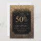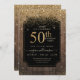 Gold Glitter Wood 50th Birthday Party Black Invitation