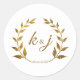 Gold Glitter Wreath Monogram Wedding Save the Date Classic Round Sticker