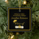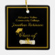 Graduation ornament with custom front and back text. Nice unisex design easy to personalise with your own text. Features image of a gold grad cap and matching tied diploma in a framed square. Red, black and other cap colours also available in this same design.