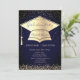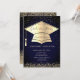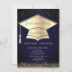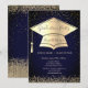 Gold Grad Cap,Diamonds Confetti Blue Graduation Invitation