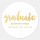 Modern typography reading "graduate" in gold over a white background. Text underneath in gold. Easy to personalise! Perfect for graduation announcements, invitations, or for party use! Product does not contain actual gold foil.