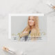 Let your senior portrait shine with this modern graduation party invitation featuring a sweeping gold calligraphy "graduate" script overlay across a full-bleed photo. The clean white back pairs gold calligraphy accents with serif typography to keep all your party details beautifully organised. Fully customisable text on both sides makes personalising effortless.
