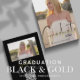 This design features modern typography calligraphy script, a gold golden and black two 2 photo layout, with an elegant graduate text overlay, a stylish trendy elegant high school, a minimalist minimal simple class, a graduation grad party invites, graduate typography, and calligraphy, for high school or college announcement, a stylish graduation party invitation, a clean basic simple style design, with a QR code for the online website URL address