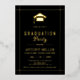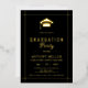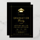 Gold graduation cap Class Of 2026 black formal graduation gold foil invitation. Honor the achievements of the Class of 2026 graduate with these elegantly crafted real gold foil black invitations. Adorned with a gold graduation cap and delicate gold borders that meet at the corners, these invitations look elegant and classy.
