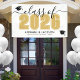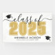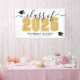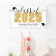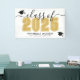 This classic yet modern graduation party banner is the perfect way to celebrate the Class of 2026. The design features an oversized "Class of 2026" in a bold yellow gold hue, accented with black and white typography and elegant grey script. Two graduation cap icons add a festive touch, while space below allows for the graduate’s name and school, making it a personalised centerpiece for the celebration.