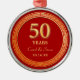 Here's a beautiful ornament to celebrate a couple's 50th wedding anniversary. A pretty Greek key gold design frames a large "50 Years". The couple's first names and special date are directly below. Everything is placed on a deep red background.