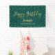 This stylish birthday banner design features gold "Happy Birthday" typography on an Emerald Green background. You can personalise name & year text and the background colour. Perfect decoration to your modern chic adult birthday party.