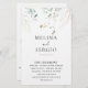 Compliment your classic wedding with this gold green leaves calligraphy wedding program. The design features elegant watercolor green and gold eucalyptus leaves.