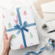 Gold Green Red Christmas Trees Pattern Wrapping Paper