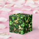 You're in luck! You found a pattern of shiny gold and green shamrocks for your part favours, just in time for St. Patrick's Day! (The reflective chrome is only simulated in the image.) The artwork evokes a golden treasure found in a cool forest on a VERY lucky day!