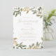 This gold greenery fall housewarming party invitation is perfect for a modern event. The design features charming artistic green and gold foliage.