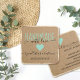 This simple, rustic, and cute business card is perfect for the home crafter, Etsy shop owner, or art fair creative. It features handwritten script font in black and teal green that says, "Handmade with love by (store name)," on top of a minimal and chic faux printed gold foil border and brown kraft paper background. It's modern, elegant, sweet, and unique; the perfect design for your customers.