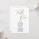 This simple, elegant design features "Table One" rendered in a modern handwriting font and embellished with a faux-metallic gold effect. The font for names can be changed if you wish. As can the background colour. Details will appear on both front and back. // 151 //
