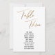 This simple, elegant design features "Table Three" rendered in a modern handwriting font and embellished with a faux-metallic gold effect. The font for names can be changed if you wish. As can the background colour. Details will appear on both front and back. // 151 //