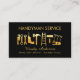 A black cover features a faux gold set of handyman tools design near the centre. Over at the top is your business name "HANDYMAN SERVICE". Your prestigious name and contact details are near the base of the card. All lettering are in faux gold.
