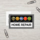 A black and white layered cover is encapsulated by a grey rectangular border frame. Over at the top lies an array of gold handyman icons. The gold icons can represent some of the services that you offer e.g. the drill-measuring tape can represent home repairs-renovation etc. Underneath all this is a slogan caption option; You can change it to suit your own service needs. The business name "HOME REPAIR" is at the base of the card; Once again, change it accordingly.