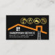 An all black cover features a rooftop design with an array of gold handyman tools at the top. The tools can represent some of the services that you might offer. e.g. the hand drill-measuring tape can represent home repairs, remodeling etc. Near the base is the business name "HANDYMAN SERVICE" which you can change and its contact details.