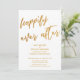 This bold, simple suite's distinction is due to the modern, casual handwritten font used for accent phrases and the loose waves pattern placed over the background. The waves evoke the idea of celebratory streamers. In this piece, the handwriting font was used to create a graphic depicting the words "happily ever after". Both this header text and background pattern were embellished with a faux gold foil pattern. Use the template fields to add your personal details and make this festive design your own. The white background can be changed to any colour you prefer. Please reach out with any special requests or for customising assistance. // 100 //