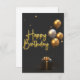 Celebrate in style with this stunning Happy Birthday design featuring a luxurious gold and black theme. Golden and silver balloons float gracefully above a beautifully wrapped gift box, adding a touch of elegance. The bold "Happy Birthday" lettering shines brightly, making this card perfect for any birthday celebration. Ideal for those who love a classy and sophisticated look. Customize it to make someone's special day unforgettable!