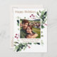 Watercolor Christmas greenery and berries for this Happy Holidays photo new home announcement postcard. Personalise it with your address, names, photo and message to loved ones, on the back.