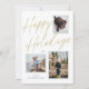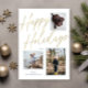 Gold Happy Holidays Script 3 Photo Holiday Card