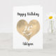 A personalised any age happy birthday card that features a beautiful gold heart, which you can with the birthday recipient's age and name underneath the heart. The inside card message can also be easily personalised if you wanted. The back of this personalised birthday card reads the year and Happy Birthday.