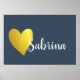 Gold Heart and Navy Personalised Cursive Poster