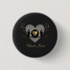 Button with a design of two grooms, standing on either side of a gold heart. This item is part of a wedding set that includes a wedding invitation, rsvp card, and more. (The gold elements in the set are faux gold and not gold foil.)