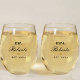 Gold Heart Mr. and Mrs. Newlywed Gift Stemless Wine Glass
