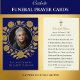 This Catholic funeral keepsake card features a reverent design with golden embroidered roses and hearts encircling a photo of your loved one, set against a deep Marian blue background. The reverse side includes a traditional Catholic prayer for the repose of the soul, invoking the intercession of the Blessed Virgin Mary and the Saints. A sacred and personalised tribute, perfect for honouring a faithful soul and sharing with family and friends at the funeral Mass or memorial service.