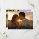 This elegant heart script photo save the date card features your photo and a script save the date above your names, date and venue. The reverse features an additional photo, message, and wedding website QR code on a lavender background. Designed by Thisisnotme©