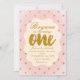 Gold Hearts & Pink 1st Birthday Party Invitation