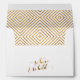 This charming envelope is ideal for all manner of mailings during your wedding season. The inside has been lined with a repeating nesting pattern of diagonal boxes; the pattern was embellished with a faux gold texture. The flap has a convenient template place holder for your names and return address. Beneath the flap I've placed a graphic made from the words "to have & to hold" featuring an elaborate script font that incorporates hearts and which has been overlaid with the same faux gold finish. This is a part of a wedding-themed set. // 90 //