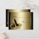 Gold high heel shoe table seating cards with pretty gold high heel shoes on a beautiful black and gold background. Add the text of your choice in the font style you prefer. You can also change the background colour. This is a printed design with no real glitter, foil, etc.