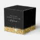 Elegant personalised square party favour box with gold glitter high heel stiletto shoes and a yellow gold faux glitter border with confetti sprinkles on a black background with custom thank you text, perfect for a modern and chic birthday, bat mitzvah, Quinceañera, bridal shower, baby shower or bachelorette party. USE THE DESIGN TEMPLATE EDITOR to change the fonts, colours and layout to create a fun and unique personalised favour box for your party guests guests.