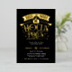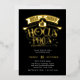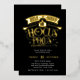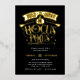 Featuring the words "Just a bunch of Hocus Pocus" in a shining gold foil and retro typography style and adorned with bats, moon, nets and a little spider over BLACK these Halloween party invitations are perfect to invite your friends and family!