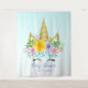 Gold horn colourful watercolor flowers unicorn illustration. Cool and modern design.